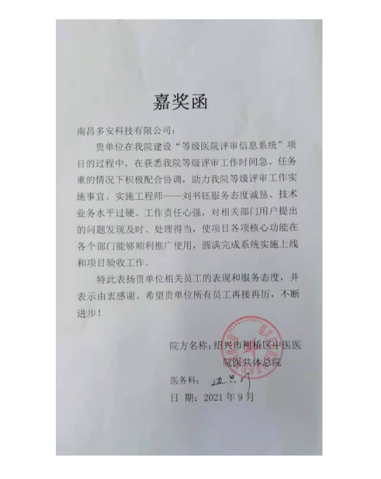 • 嵊州市第五醫院上線多安“智慧評審管理平臺”
